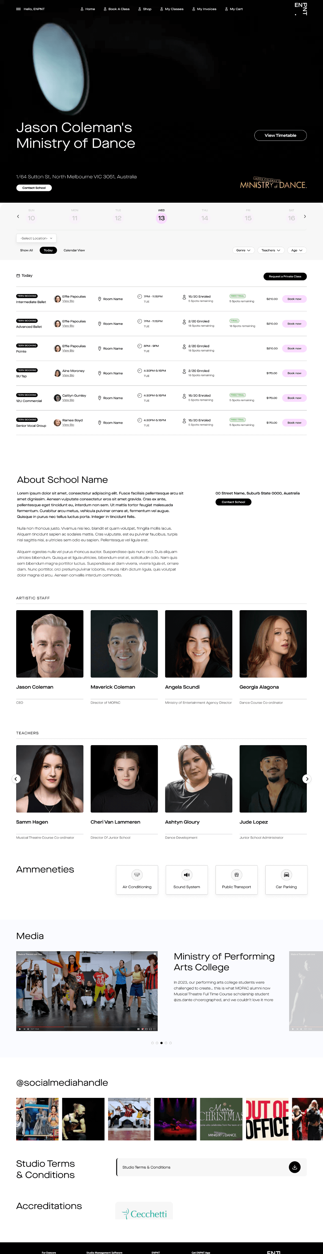 ENPNT’s Studio management system, which includes scheduling, invoicing and communication studio management system.